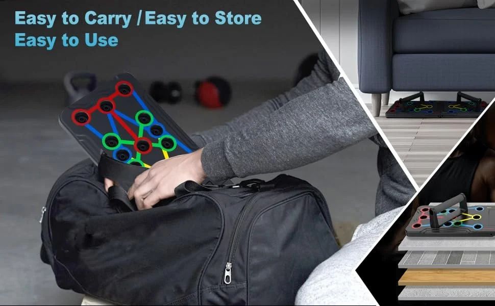 Workout anywhere with ease! This push-up board is foldable, portable, and designed for quick assembly and storage. Featuring non-slip grips and stable round pads, it ensures comfort and safety during every exercise. Use it at home, in the gym, or even outdoors — perfect for any setting!